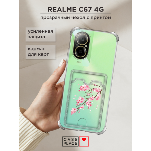 Чехол на Realme C67 4G (Реалми C67 4G) с картой и принтом Ветка сакуры