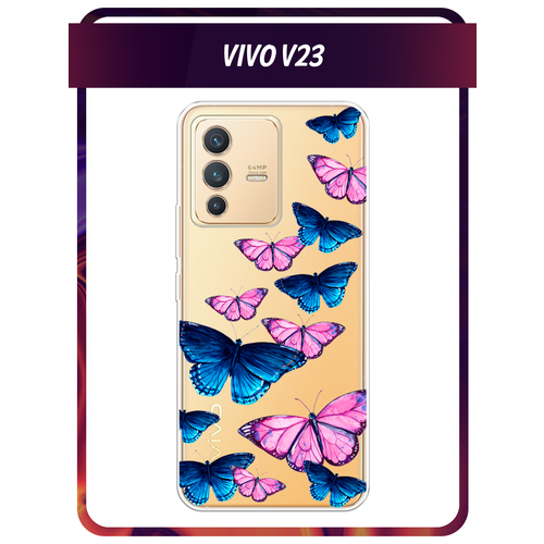 Чехол на Vivo V23 / Виво V23 с принтом Полет бабочек, прозрачный
