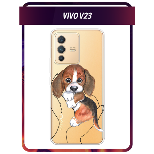 Чехол на Vivo V23 / Виво V23 с принтом Бигль в ладошках, прозрачный