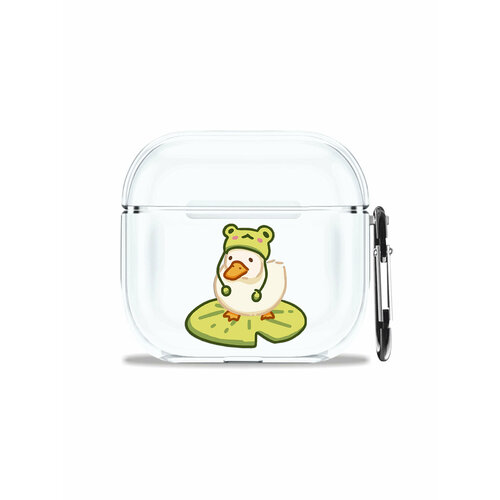 Силиконовый чехол DesignOnCase для беспроводных наушников AirPods 4, с карабином, глянцевый, Утка в шапочке