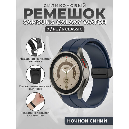Силиконовый ремешок для Samsung Galaxy Watch 7 / FE / 6 Classic, с черной магнитной застежкой, ночной синий
