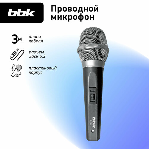 Микрофон проводной BBK CM124, комплектация: микрофон, разъем: jack 6.3 mm, темно-серый