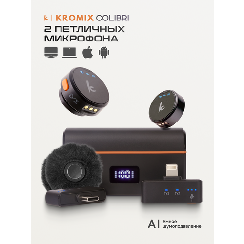 Микрофон петличка беспроводная Kromix Colibri , с шумоподавлением, Type-C, Lightning
