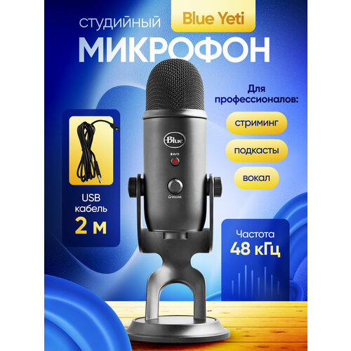 Микрофон студийный Blue Yeti, для стримов, профессиональный
