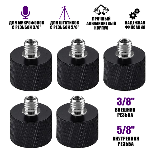 Переходник с 5/8(F) на 3/8(M) для микрофона и стойки, 5 шт