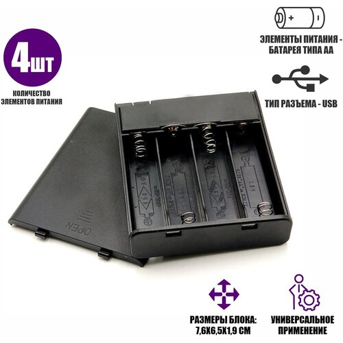 Батарейный блок питания адаптер с USB 5V для подзарядки LED-светильников, подсветки зеркал, светодиодных лент и фитоламп