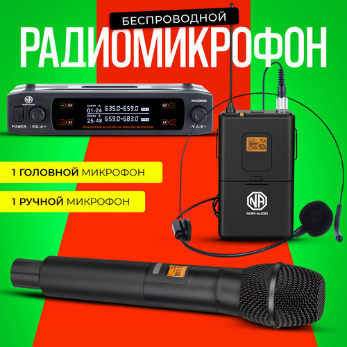 Беспроводной микрофон для живого вокала и караоке NOIR-audio NX 200 H/B с головным микрофоном и ручным микрофоном