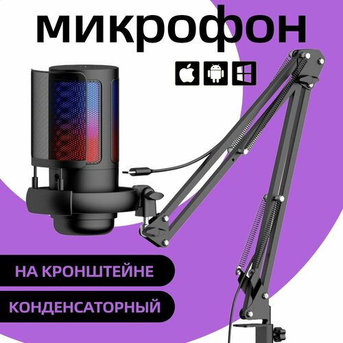 Микрофон универсальный кардиоидный JMARY MC-PW9 RGB, USB/Type-C+Jack 3.5 mm, 1.8 м, черный