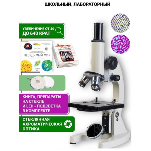 Микроскоп биологический Микромед С-12 с книгой, препаратами и LED-подсветкой