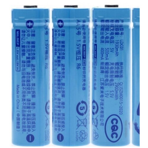 Аккумуляторные батарейки АА 1,6 v 2000 mWh с зарядкой от USB кабеля, 2 шт.
