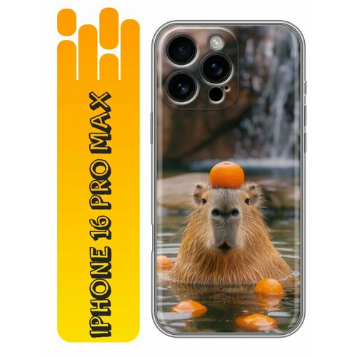 Чехол для Iphone 16 Pro Max с принтом Смешные капибары (Айфон 16 Про Макс)