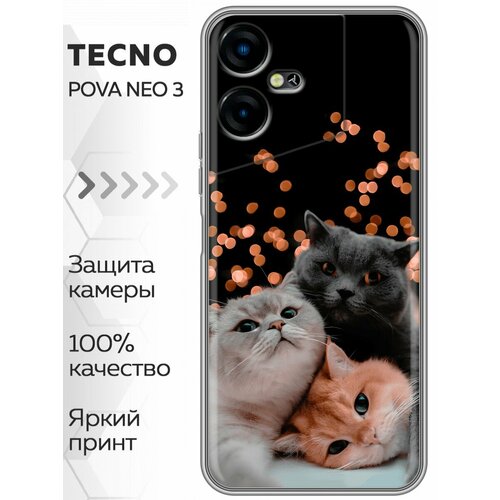 Чехол для Tecno Pova Neo 3 с принтом Смешные котики (Техно Пова Нео 3)