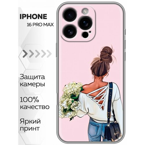 Чехол для Iphone 16 Pro Max с принтом Девушка и букет (Айфон 16 Про Макс)