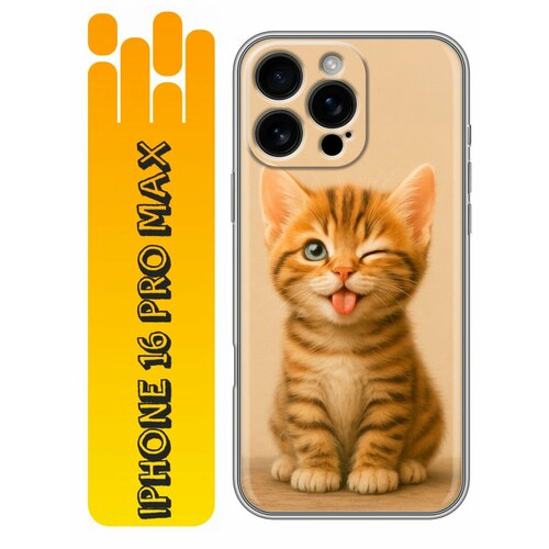 Чехол для Iphone 16 Pro Max с принтом милый котенок (Айфон 16 Про Макс)