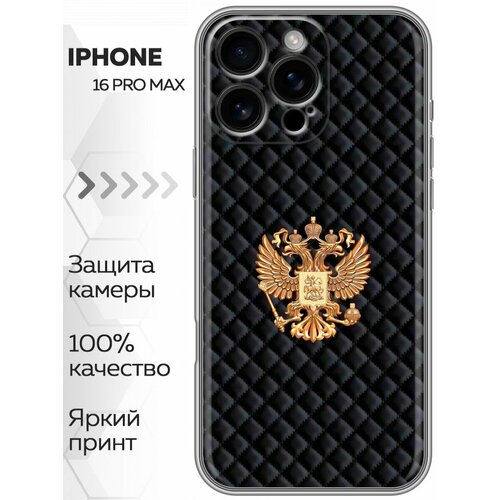 Чехол для Iphone 16 Pro Max с принтом Герб России принт (Айфон 16 Про Макс)