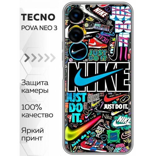 Чехол для Tecno Pova Neo 3 с принтом найк nike черный (Техно Пова Нео 3)
