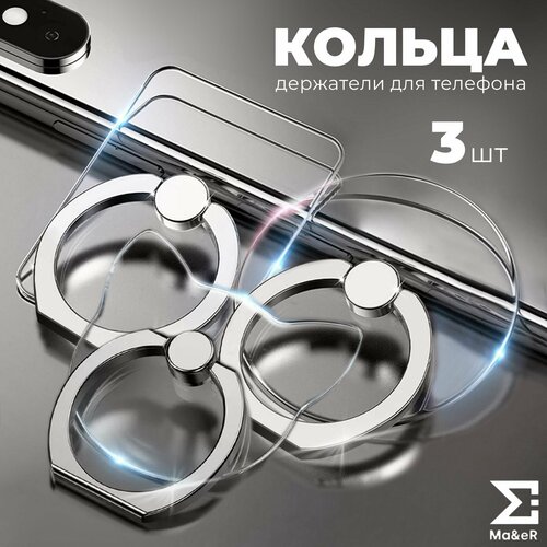 Набор 3 попсокетов для телефона кольца-держатели прозрачные