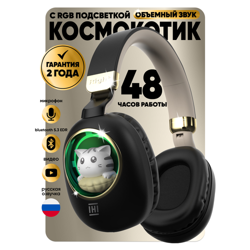 Наушники IHI GW002 "Кошка в иллюминаторе", детские, беспроводные, накладные, RGB-подсветка