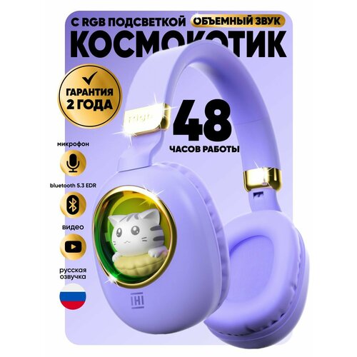Беспроводные наушники "IHI" с котиками, RGB подсветкой, Bluetooth 5,3