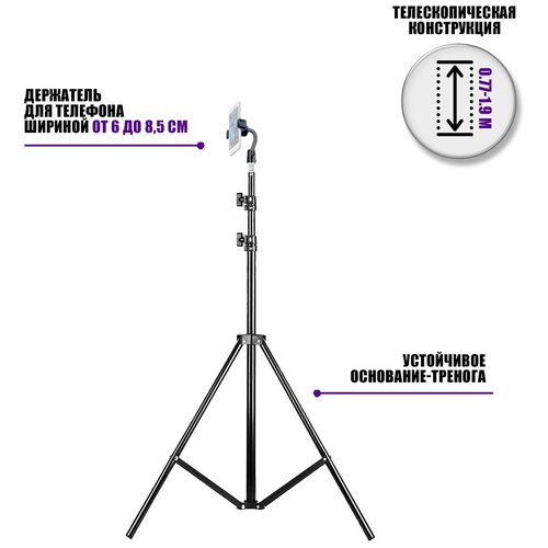 Цены на Напольная стойка для кольцевой лампы на усиленном штативе для съемки сверху с держателем для телефона, сумкой-чехлом и кнопкой Bluetooth черный в г. Москва