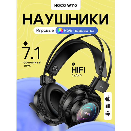 Игровые проводные наушники HOCO W110, с динамическим RGB-микрофоном, 50 мм