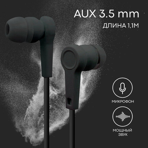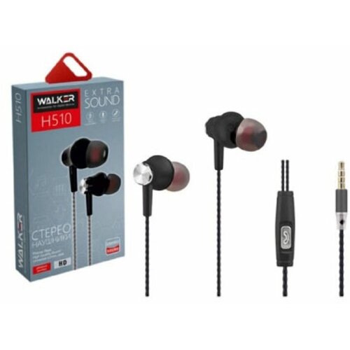 Наушники проводные вакуумные с микрофоном и кнопкой ответа, mini jack aux 3.5мм, WALKER, H700, черные, гарнитура для телефона, компьютера, ноутбука