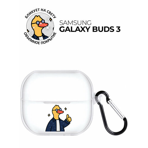 Чехол на Samsung Galaxy Buds 3 с принтом "Утка-энтузиаст" прозрачный