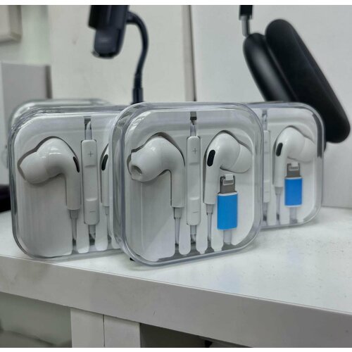 Наушники проводные вакумные с микрофоном для айфона/lighting белые