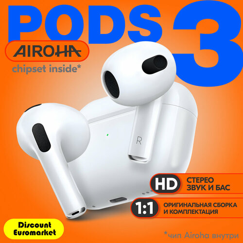 Наушники беспроводные Pods 3 / сенсорное управление, микрофон, Lightning, Bluetooth 5.0, совместимость с iPhone и Android