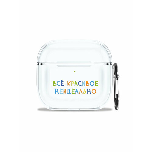Силиконовый чехол DesignOnCase для беспроводных наушников AirPods 4, с карабином, глянцевый, Всё красивое неидеально