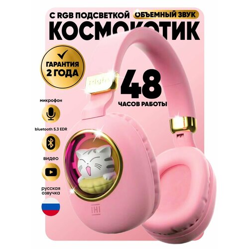Цены на Наушники IHI GW002 "Кошка в иллюминаторе", детские, беспроводные, накладные, RGB-подсветка розовый в г. Москва