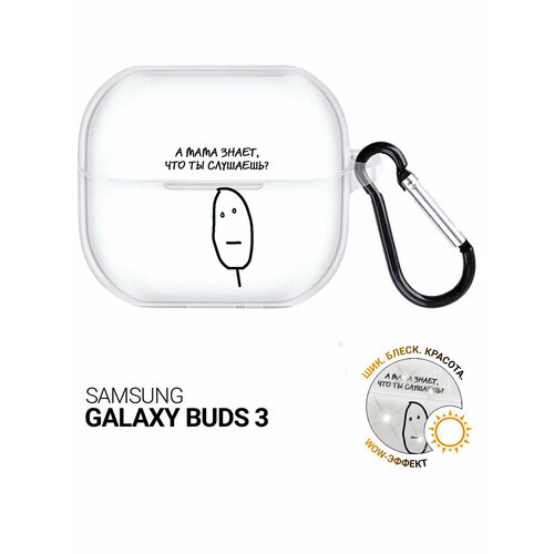 Чехол на Samsung Galaxy Buds 3 с принтом "А мама знает?" прозрачный