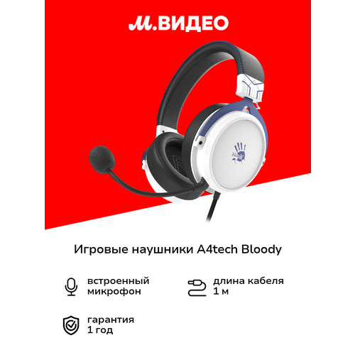 Наушники с микрофоном A4Tech Bloody G575 Naraka (1857942) белый/красный, мониторные, проводные USB