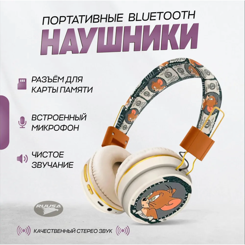 Беспроводные детские наушники Том и Джерри с микрофоном и FM / портативные Bluetooth наушники