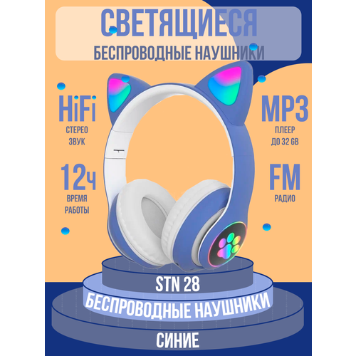 Беспроводные наушники STN 28 для детей с ушками кошки синие