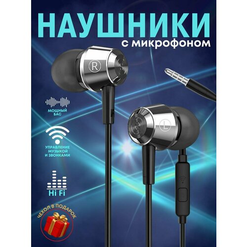 Наушники HAPPYAUDIO, проводные, с микрофоном, серебристо-черные