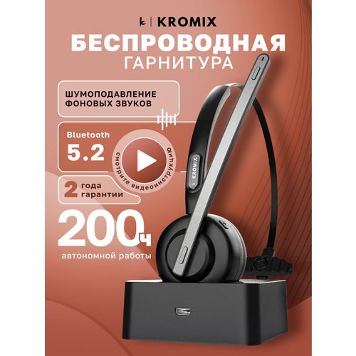 Гарнитура с микрофоном беспроводная Kromix К221, черная, Bluetooth 5.2, для компьютера