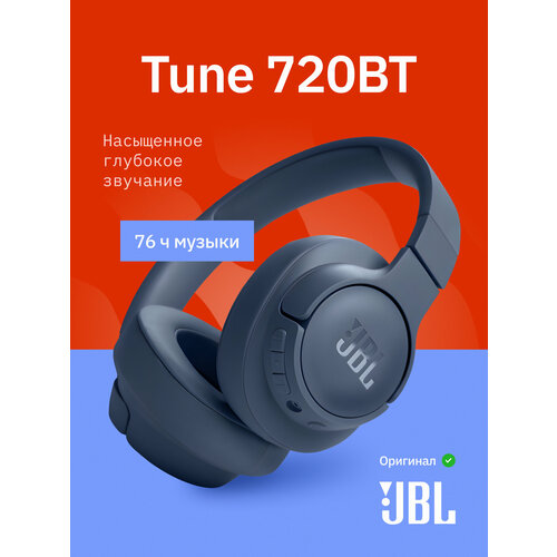 JBL 2025 Наушники беспроводные большие накладные JBL Tune 720BT синие с шумоподавлением встроенный микрофон