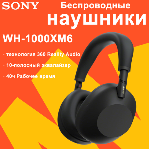 Беспроводные наушники Sony WH-1000XM6 с шумоподавлением ANC, Черный | Black