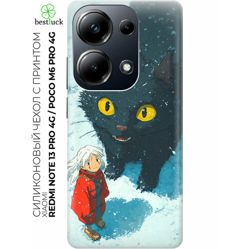 Силиконовый чехол на Xiaomi Redmi Note 13 Pro 4G / Poco M6 Pro 4G с принтом "Аниме‑зимняя сказка"