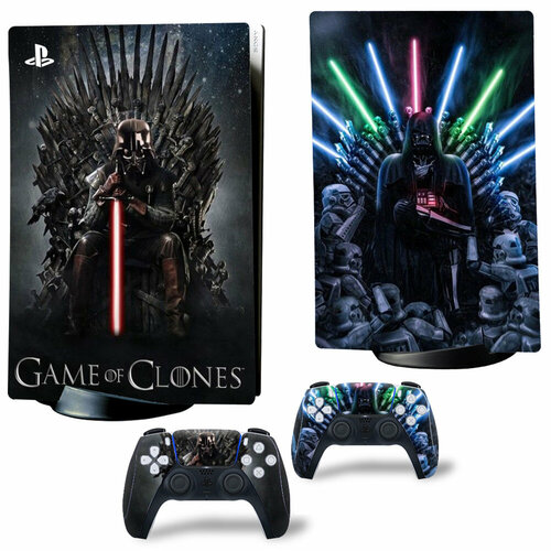 Наклейка виниловая защитная на игровую консоль Sony PlayStation 5 Fat Disc Edition, Game of Clones, полный комплект с геймпадами