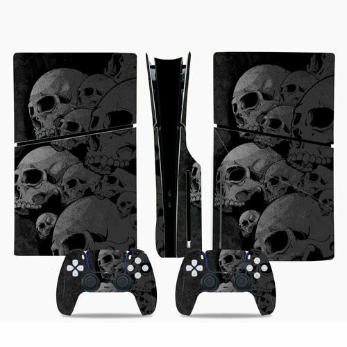 Наклейка виниловая защитная на игровую консоль Sony PlayStation 5 Slim Disc Edition, Черепа-черный, полный комплект с геймпадами