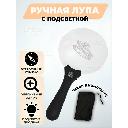 Лупа для чтения с подсветкой , смотровая, 2х-4х кратность