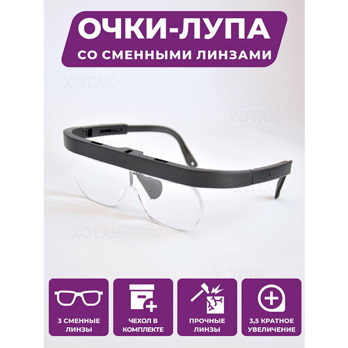Очки лупа увеличительные с подсветкой, со сменными линзами в футляре, лупа налобная, увеличительные линзы для рукоделия, ремонта и чтения
