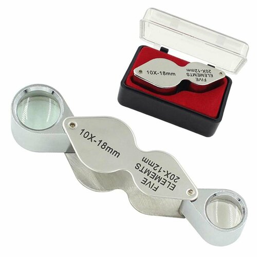 Лупа ювелирная , складная 20х - 10х кратность , лупа карманная в футляре