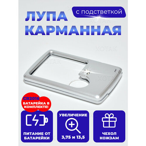Лупа карманная с подсветкой, для чтения , лупа ручная 3.75 х 13.5 кратность