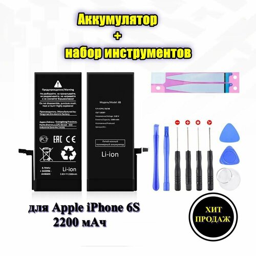 Премиум аккумулятор увеличенной ёмкости для Apple iPhone 6S (2200 мАч / 2300мАч) + клейкая лента + набор инструментов