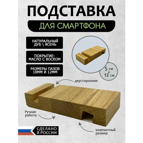 Подставка для смартфона настольная из дуба 12х5см