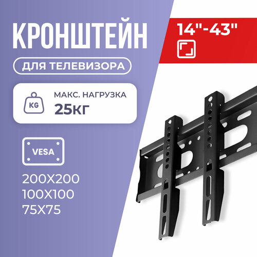 Кронштейн для телевизора T20 VESA TV 14"-43" 25кг, настенный, фиксированный, сталь