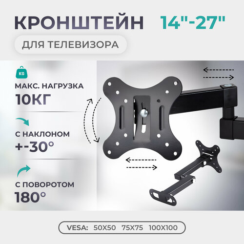 Кронштейн для телевизора CP101 VESA TV 14"-27" 10кг. настенный, с поворотом и наклоном